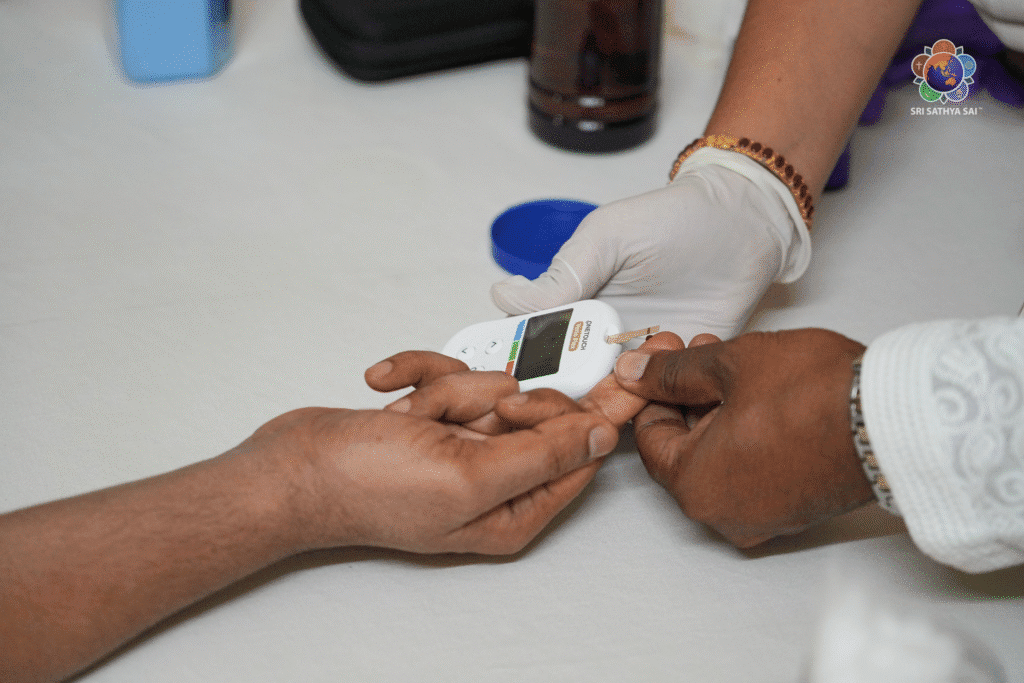 Cutting-edge tests, such as CT Coronary Calcium Screening & Glucose Tolerance Test, are being conducted with expert support from Bhagawan’s hospitals, alongside doctors from SSSGC, SSSSO, and nursing college students.
