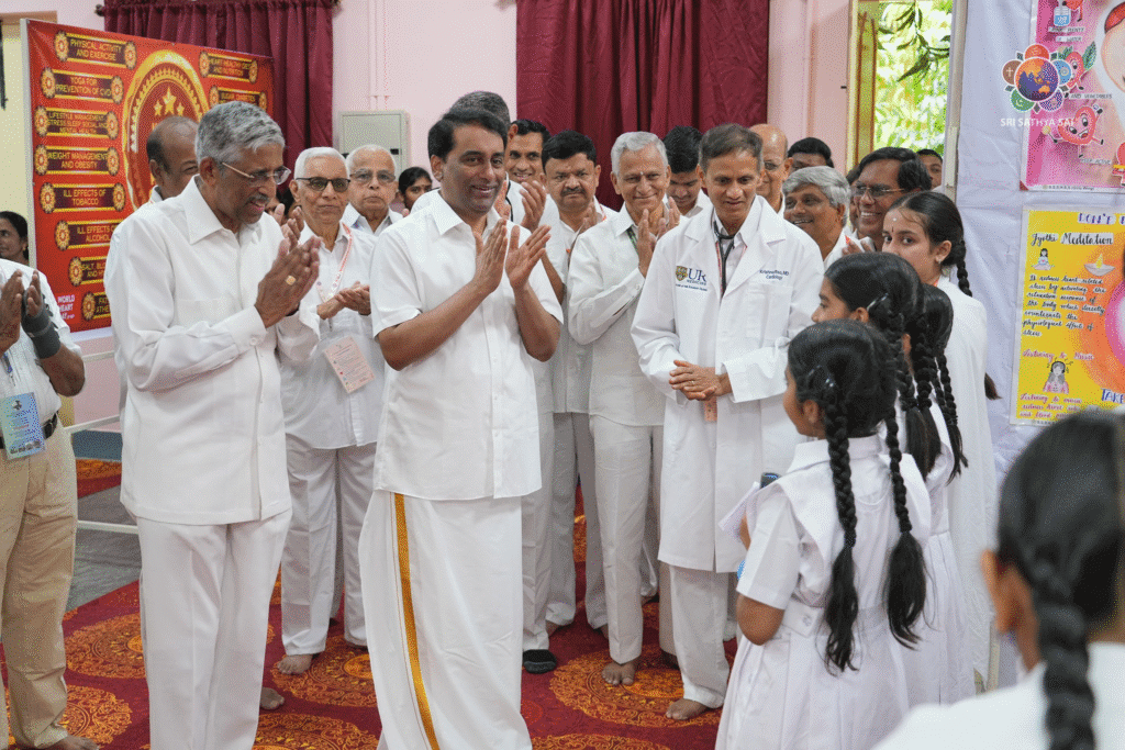 Moved by the creativity, sincerity, and passion of the students, dignitaries remarked that these youthful offerings had the power to touch hearts and inspire lasting lifestyle changes — aligning perfectly with the vision of Bhagawan Sri Sathya Sai Baba: “Health is Wealth. Happiness is Health. Health is Holiness.”