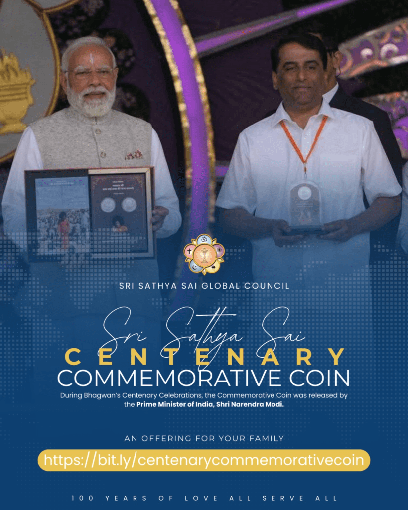 We are delighted to share a very special and historic announcement with you. In honour of the 100th Birth Anniversary (Centenary) of Bhagwan Sri Sathya Sai Baba, Hon’ble Prime Minister Narendra Modi released a commemorative coin as a tribute to the life, teachings, and unparalleled legacy of Bhagwan Baba.