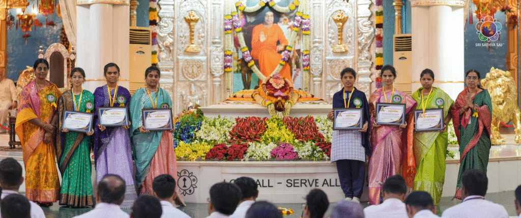 On the felicitous occasion of the centenary of the advent of Bhagawan Sri Sathya Sai Baba — celebrated across the State of Andhra Pradesh — a grand essay writing competition was conducted at three distinct levels. At the high school level, students explored the theme “Duty is God”, while junior college entrants wrote on “Tomorrow’s future depends on what we do today,” and degree college participants reflected on “Transform yourself to transform the world.” A total of 4,182 educational institutions, and 1,73,030 students rallied for this noble endeavour, with 3,360 schools (1,32,136 students), 566 junior colleges (25,684 students) and 256 degree colleges (15,210 students) participating. At the conclusion of district-level rounds, the State-level gold medals and honours were reserved for exceptional winners in both Telugu and English media. The distribution honours were performed by Ms Himavahni Rathnakar and functionaries of SSSSO, India.
