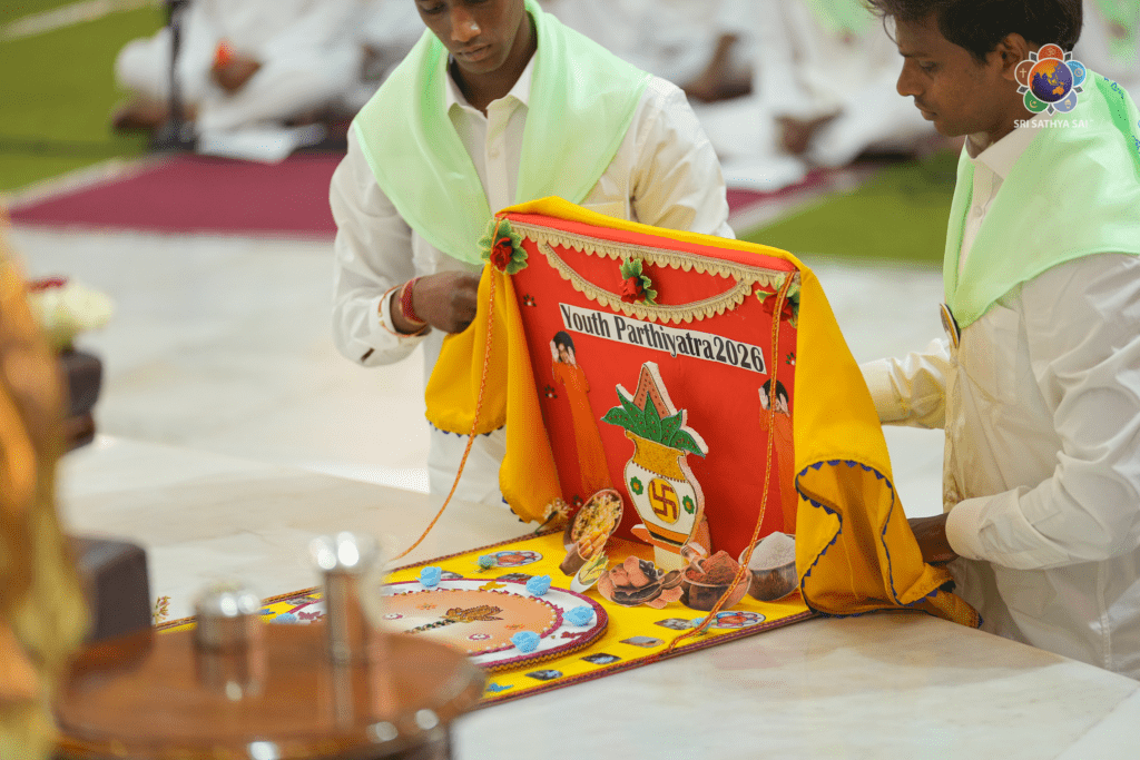 Earlier in the evening, Mr Lakshmana Rao (State President), addressed the gathering, gratefully recounting the immense blessing of receiving this sacred opportunity year after year to offer their love and service at Bhagawan’s Lotus Feet. He reflected on the joy and spiritual fulfilment that this annual pilgrimage brings to the youth. Following this, the State Youth Coordinator, Mr Gowtham C, presented a comprehensive overview of the various activities undertaken throughout the year, highlighting initiatives rooted in service, devotion, and character-building.