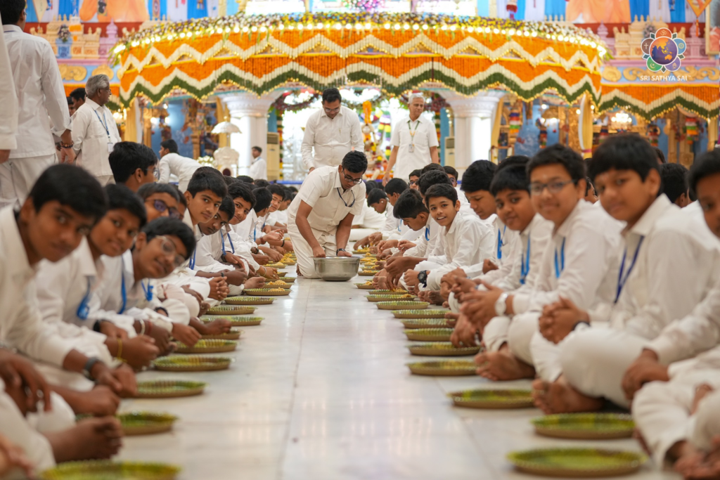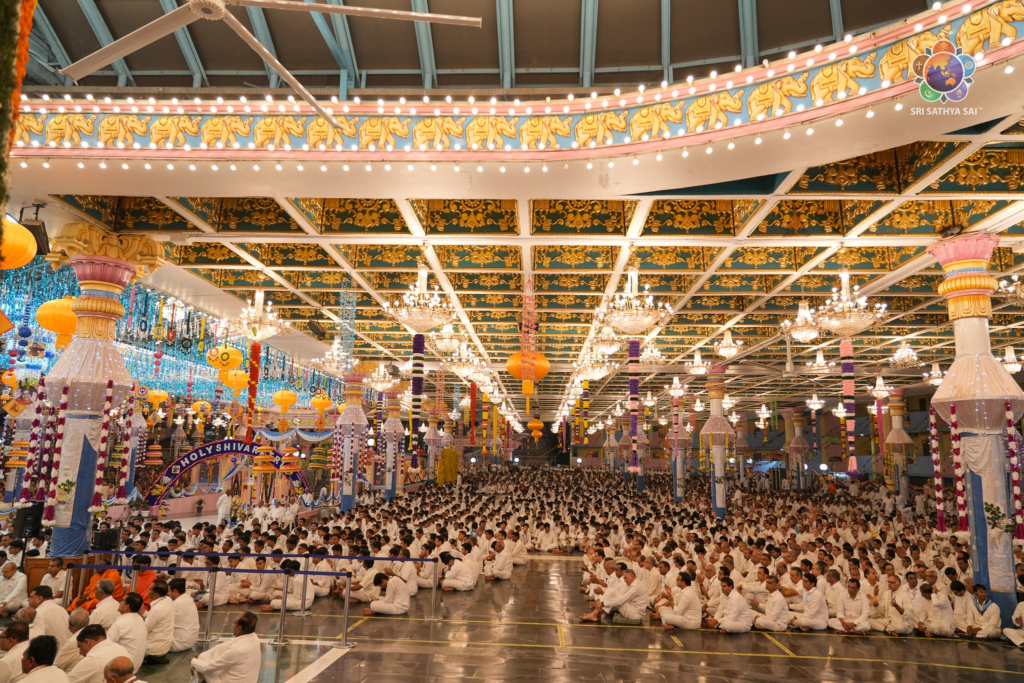The sacred Maha Shivaratri Akhanda Bhajan at Prasanthi Nilayam concluded successfully in an atmosphere charged with devotion, unity, and spiritual exaltation. Throughout the entire night, a seamless vigil of sacred singing unfolded, as devotees, staff, students, and alumni took turns at the altar, each group pouring their hearts into bhajans in loving adoration of Lord Sai Shiva. While the bhajan continued in unbroken rhythm, the enthusiastic and earnest Vedam chanters gathered at one end of the hall. Their powerful intonations of Sri Rudram rose in majestic cadence, transforming the sacred night into a living stream of collective prayer of Bhajans and Vedam.