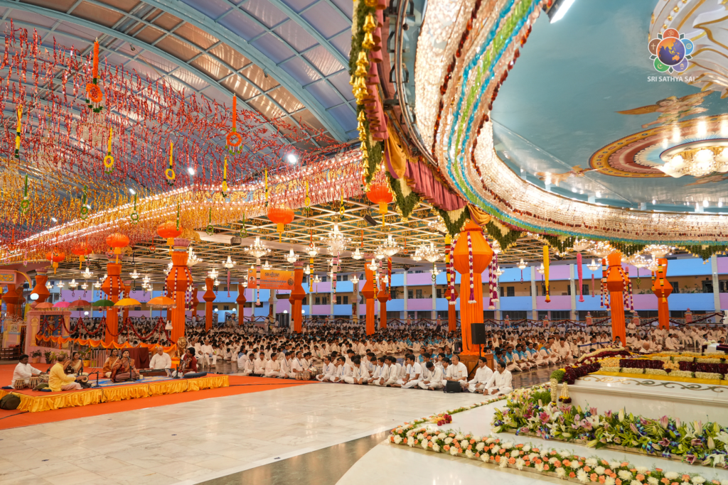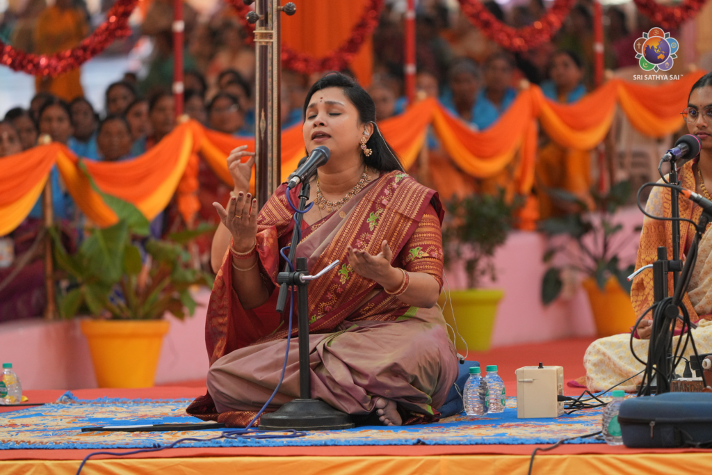 The serene evening of the auspicious Sri Rama Navami celebrations in Sai Kulwant Hall at Prasanthi Nilayam featured a musical offering presented by Ms Sreenidhi Venkatesh and her team, who rendered a heartfelt, ever-popular set of compositions of Saint Tyagaraja, Annamacharya, Bhadrachala Ramadas, Sadashiva Brahmendra, and Purandara Dasa.