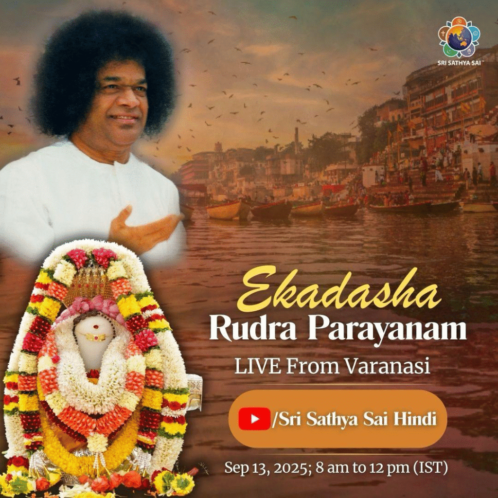 With Bhagawan’s blessings, we warmly invite you to join the Ekadasha Rudra Parayanam on September 13, 2025, streamed live from Varanasi, on the Sri Sathya Sai Hindi YouTube Channel.