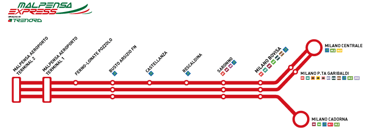 From Milan downtown (Centrale, P. Ta Garibaldi or Cadorna) stations take the Malpensa Express bound for Malpensa Airport.
