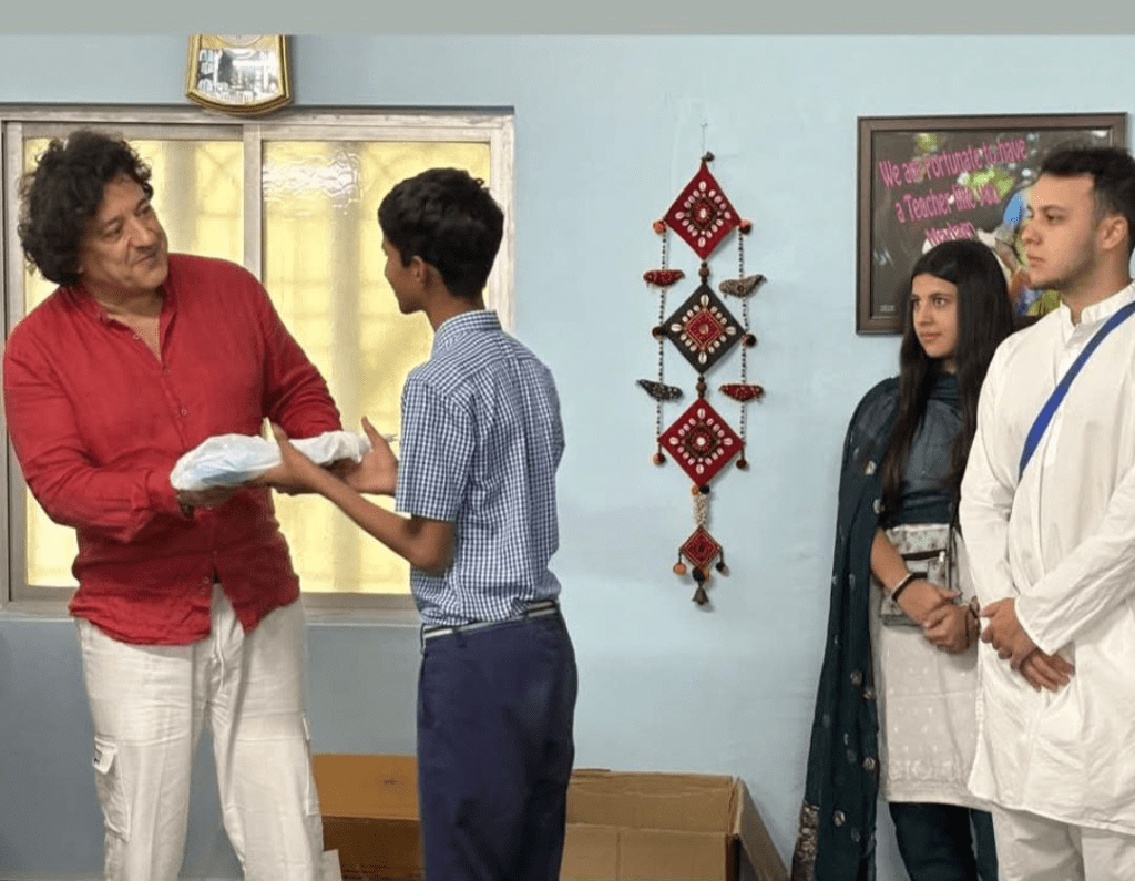 On 23 December 2025, Federica Romanin Jacur, the president of the Sai Centre in Padua, Italy, and her family — her husband, Riccardo Cattelino, and their children, Jacopo and Miriam — donated over 600 packages of school supplies to the children of the Sai Gheeta School in Puttaparthi, both young and old.