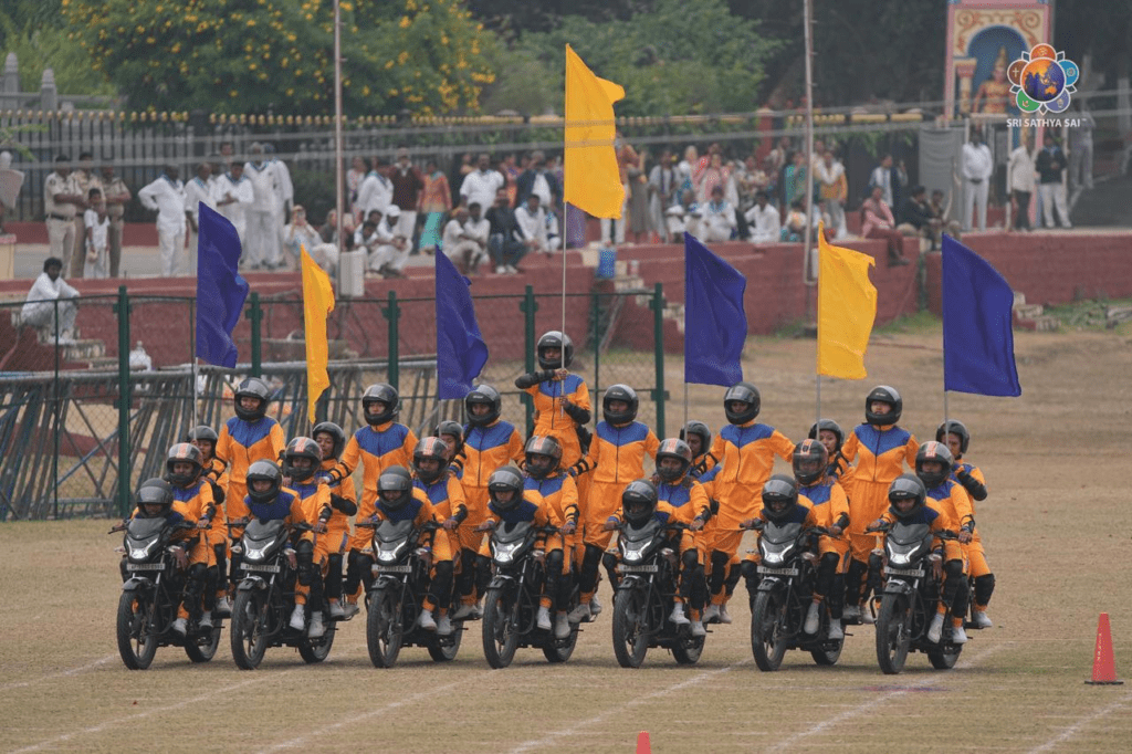 The morning session reached a thrilling crescendo with mesmerising bike stunts performed by the Women’s Campus of SSSIHL, drawing admiration and applause from all present.