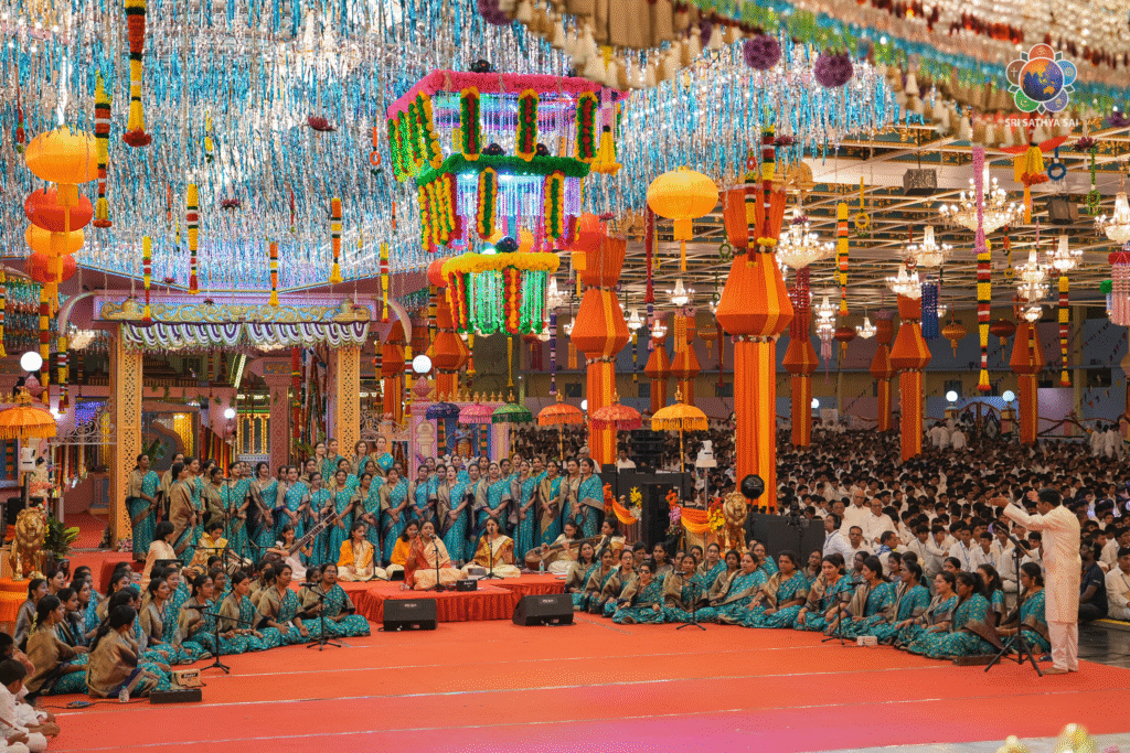 On this sacred Ladies’ Day—an occasion lovingly instituted by Bhagawan Sri Sathya Sai Baba in 1995 to honour the Divine Feminine and celebrate the purity, strength, and sanctity of womanhood—Prasanthi Nilayam witnessed an evening drenched in devotion, wisdom, and the transforming power of Nada Brahma. The august assembly witnessed the presence of His Holiness Swami Chidanand Saraswati Ji, President of Parmarth Niketan, Rishikesh, and a sublime musical presentation by Smt Sudha Ragunathan, who led the vocal ensemble Nada Shakti as a tribute to Nari Shakti.