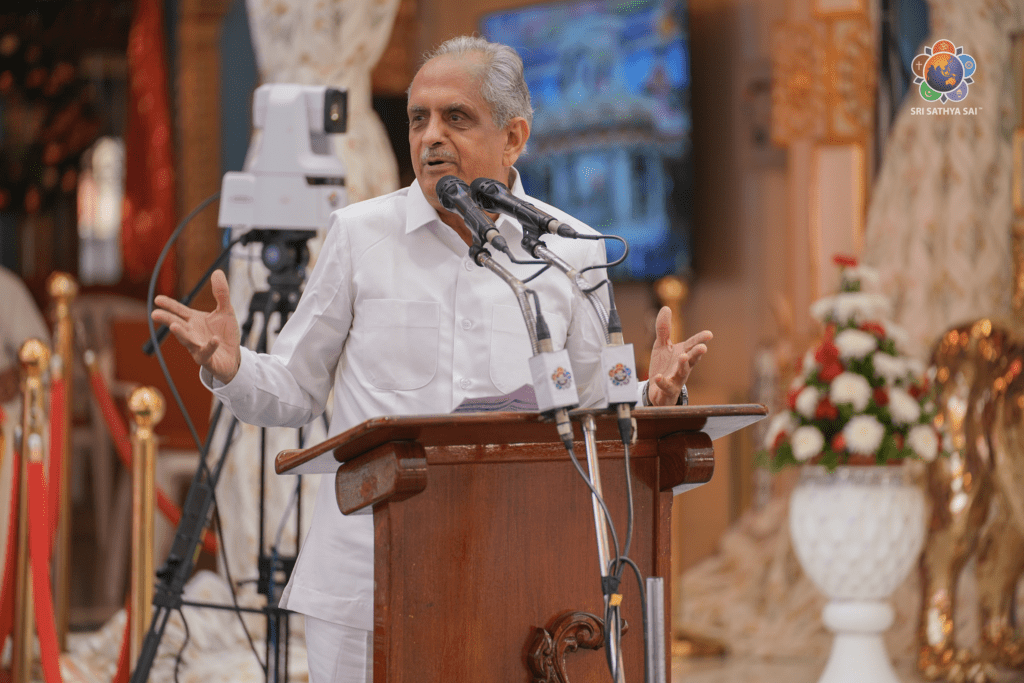 In his keynote address, Mr Nimish Pandya (All India President – SSSO) described Prasanthi Nilayam as the “source”—likening it to the origin of the Ganga—where the very atmosphere and every breath provide the energy and direction needed to shape the future. He beautifully explained the “Key” and the “Note” of leadership: the Key being the ability to manage oneself while trusting that God has already provided all the inner tools required, and the Note being a constant remembrance that the ultimate goal is to strive for the excellence and character exemplified by Bhagawan.