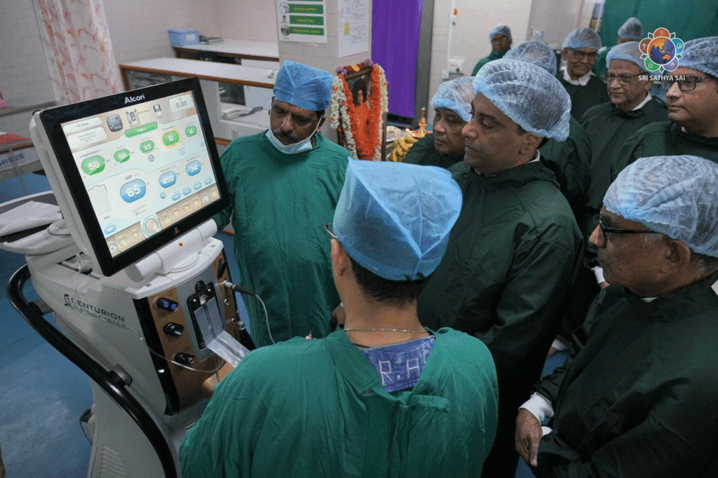 The phacoemulsification machine, the Alcon CENTURION Vision System, worth around Rs 75 lakh, was inaugurated by Mr RJ Rathnakar, Managing Trustee of the Sri Sathya Sai Central Trust, amidst the presence of Dr Gurumurthy (Director, SSSIHMS – PG), Dr Anuj Sharma (Head of Department of Ophthalmology) and other senior staff members of the hospital.