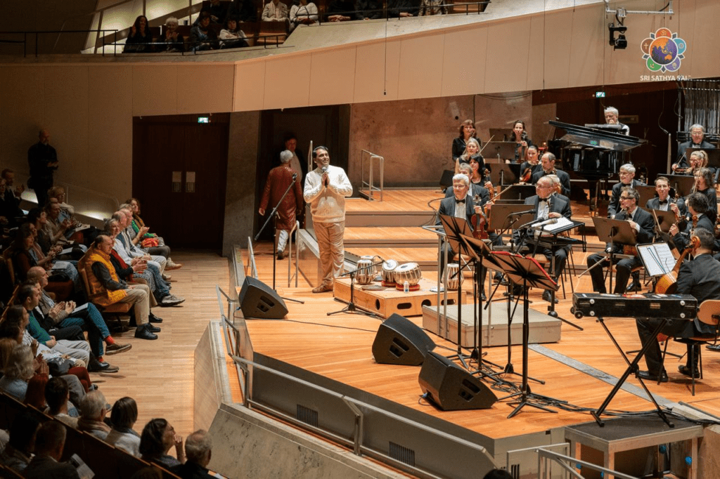 Just a few days after the celestial evening of Bhagawan’s grand centenary birthday, the iconic Berlin Philharmonie Hall became the sacred stage for a historic musical offering curated in honour of the Centenary of Bhagawan Sri Sathya Sai Baba. After its revered premiere in Puttaparthi, the concert made its international debut at one of the world’s most prestigious cultural venues, marking a significant moment in the global celebration of Sai Baba’s universal message.