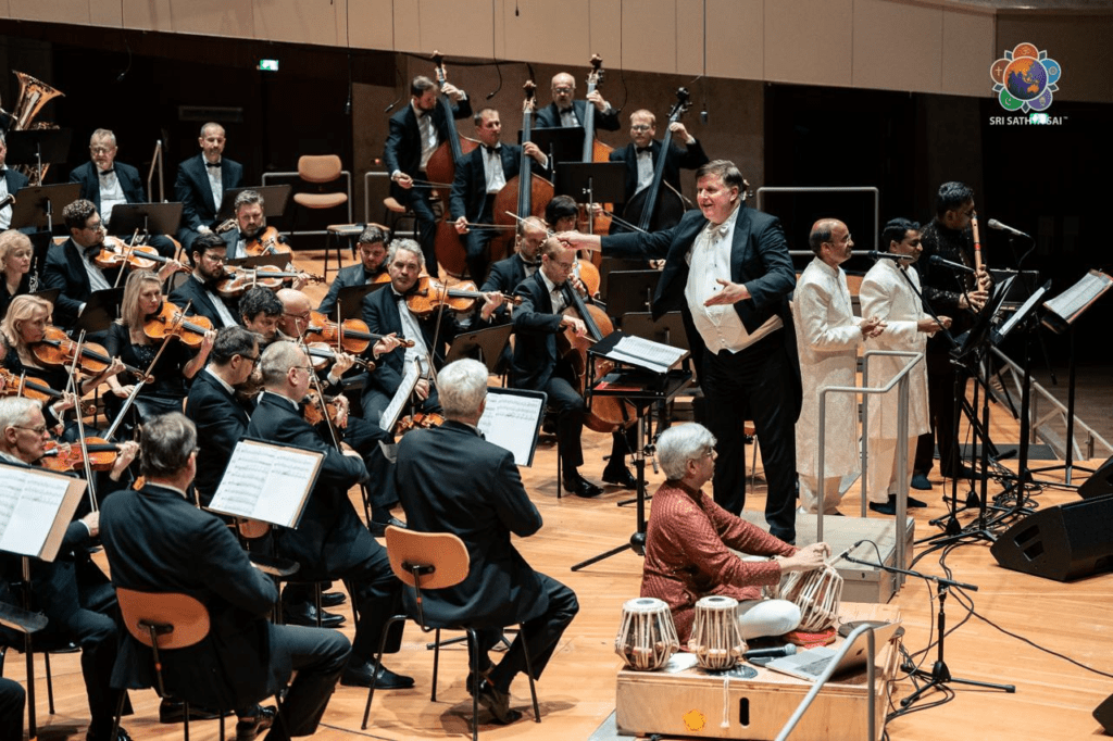 With an audience of over 1,500 attendees, comprising mainly European patrons, artists, diplomats, musicians, and spiritual seekers, the concert was met with overwhelming appreciation. The hall was immersed in an atmosphere of reverence, harmony, and love. As an ode to Baba’s timeless teachings, the concert was creatively crafted using the compositions most loved, sung, and inspired by Baba Himself. The message of Sathya Sai was innovatively reimagined in a grand orchestral framework, creating a rare and powerful confluence of Eastern spirituality and Western symphonic brilliance.