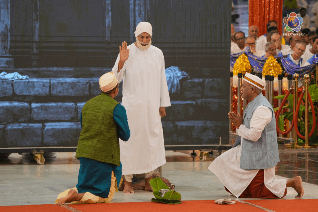 What begins as a scientific mishap gradually transforms into a soul-awakening pilgrimage. Through a series of poignant vignettes, the drama beautifully illustrated God’s omnipresence — Hanuman realising that true Seva is love in action at every moment, Jesus teaching that all are branches of the one divine vine, and Shirdi Baba revealing the truth of Divinity by appearing as the hungry dog driven away from an offering. Each episode echoed the same refrain: to serve any being is to serve God Himself.