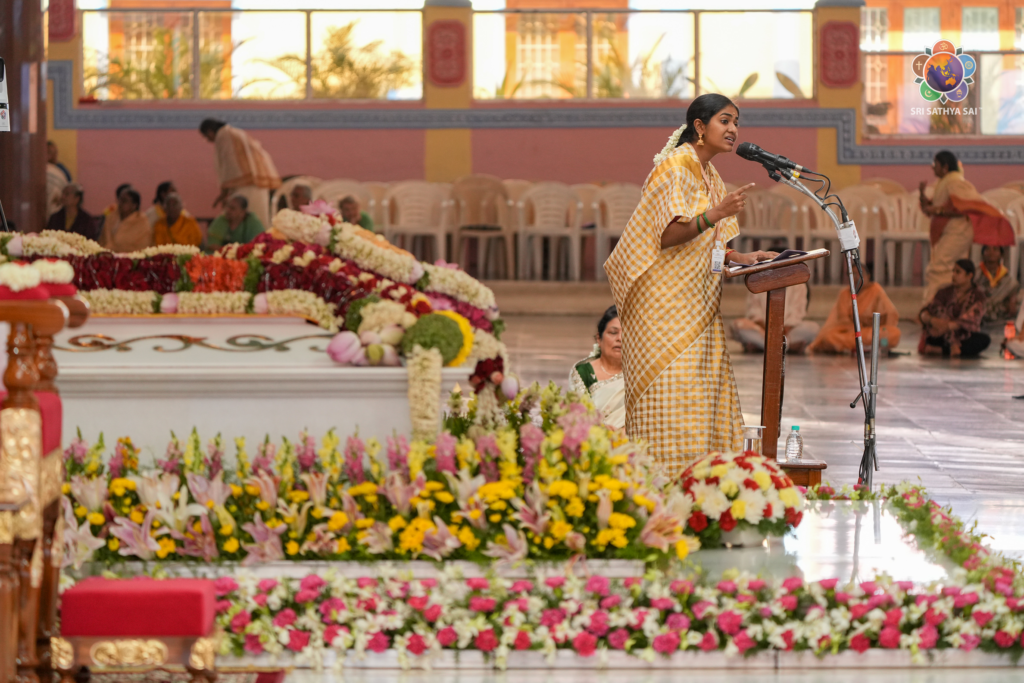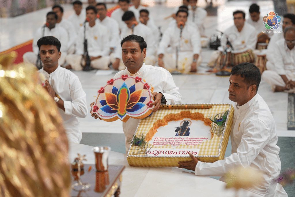 A mellifluous musical offering titled ‘Hridayaharam’ followed, seamlessly blending music, reflection, and spiritual introspection. Traditional Harinama Keertanam and devotional songs in praise of Lord Guruvayurappa were presented, with the youth reverentially equating Puttaparthi to the Guruvayur of this age. Inspiring testimonies shared by the youth spoke of divine intervention and inner awakening.